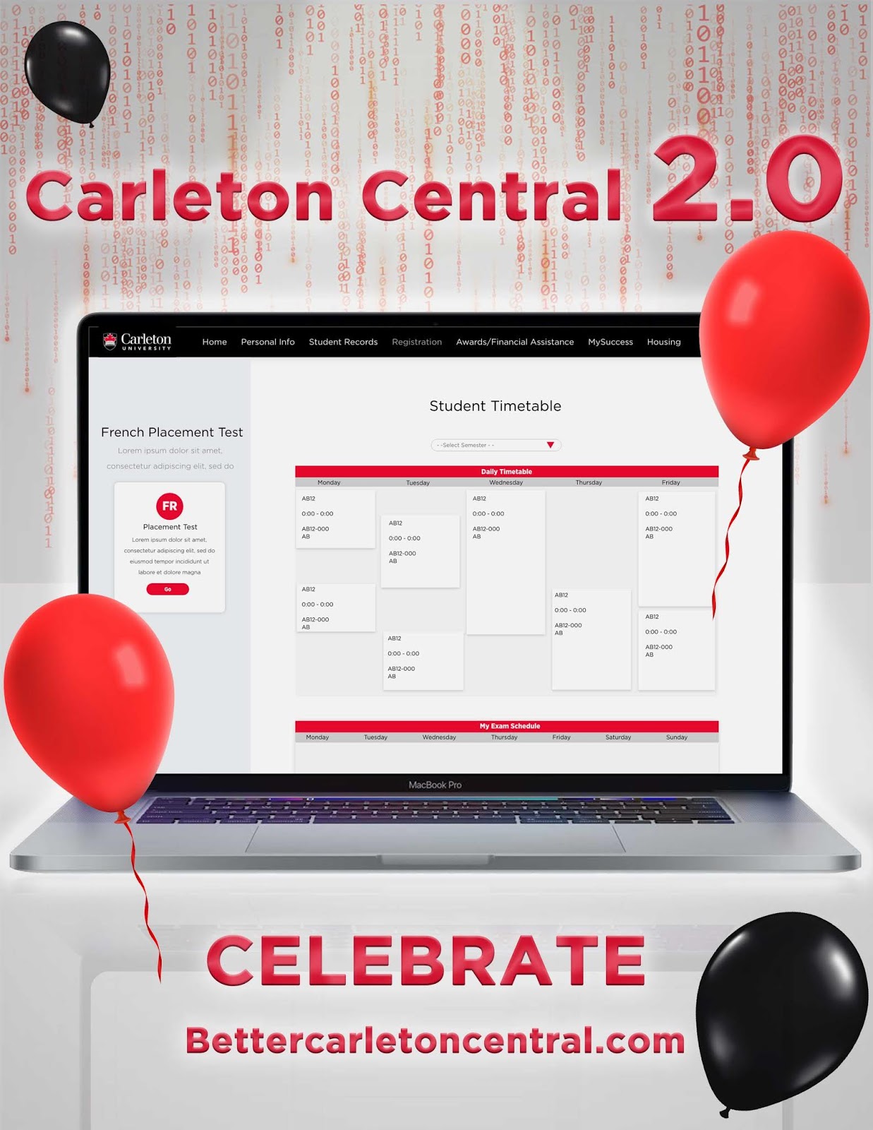 Carleton Central needs a facelift. A new user interface will rebuild user navigation and create a better layout for content reading. This will rely on four major roles which including branding, design, framework and database. Each of them will heavily depend on each other for completing the project. The team will be using the existing Carleton-Brand-Standards as the branding guideline.